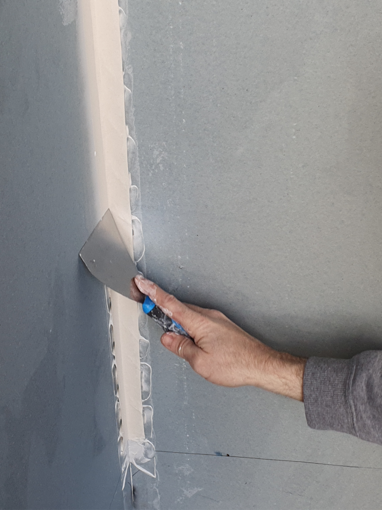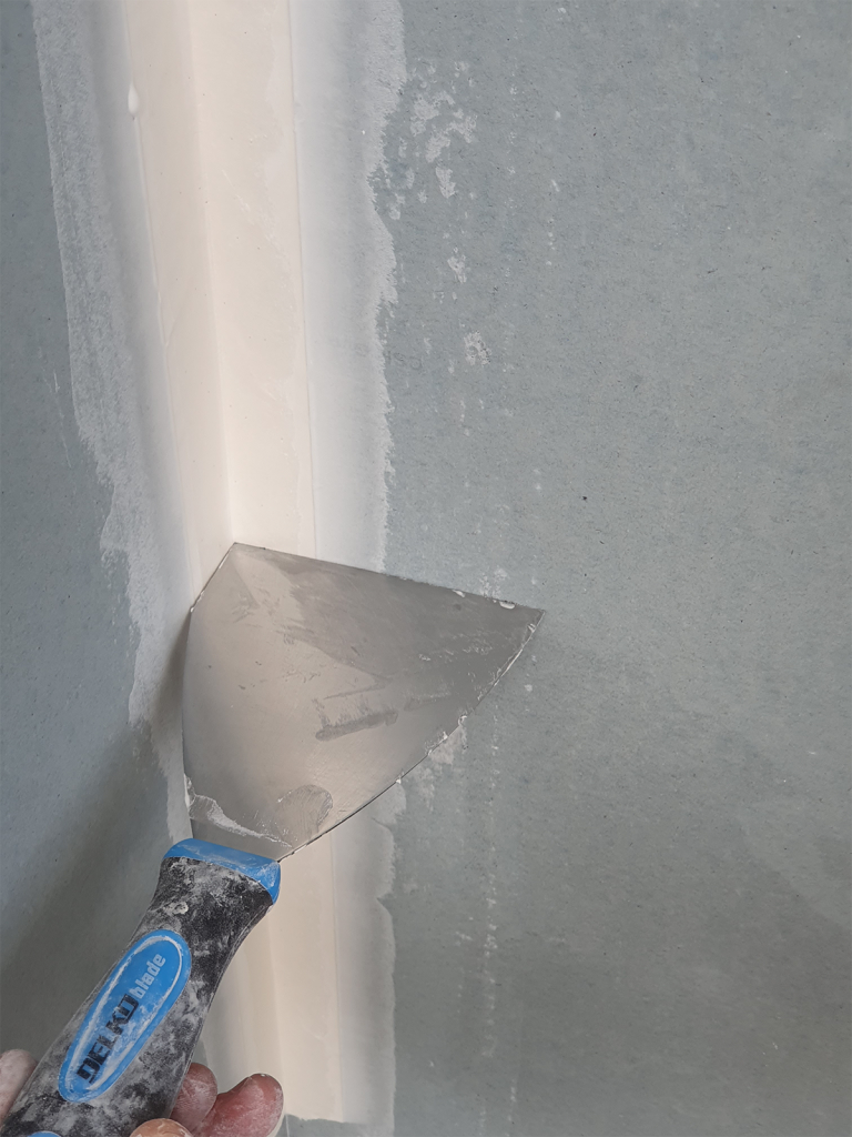 It has been meticulously designed by a drywall professional with a 90º edge for cutting tape cleanly and easily. As well as a regular, rounded joint knife edge for wiping off excess compound.