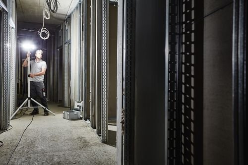A new generation of light: Illuminates extensively, instead of selectively. With a unique LED configuration for 180° scattering angle. For homogeneous illumination with colour that replicates daylight. Can be used with stable tripod extended up to a height of 2.00 m. Extremely sturdy and durable with 10,000-hour lifetime (L70), shock-proof corners and safely stored in a Systainer. One-hand grip, suspension means and cord holder. The new SYSLITE DUO. The light for your tool.