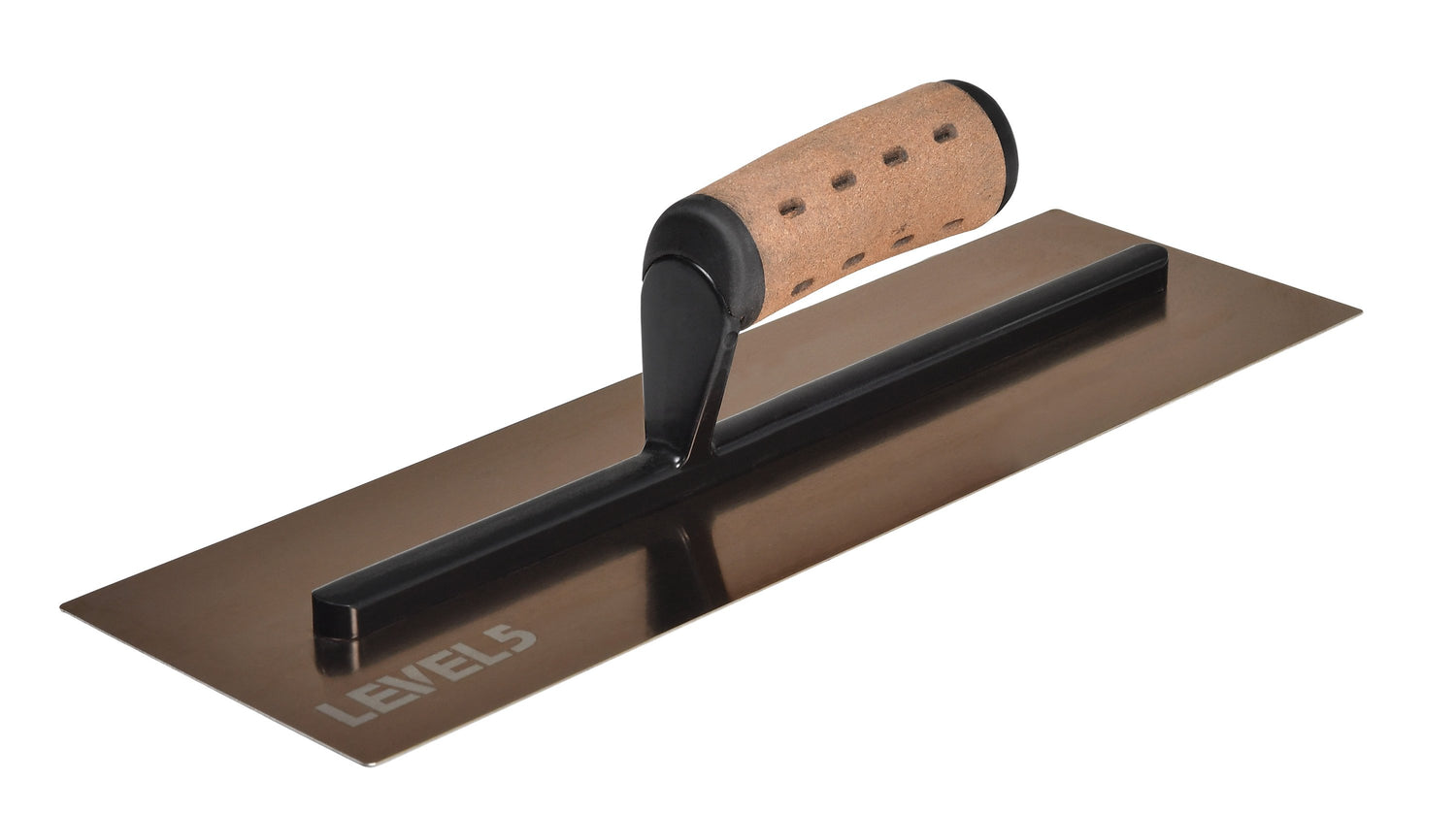 LEVEL 5 14" FLAT TROWEL GOLD STAINLESS STEEL LEATHER HANDLE