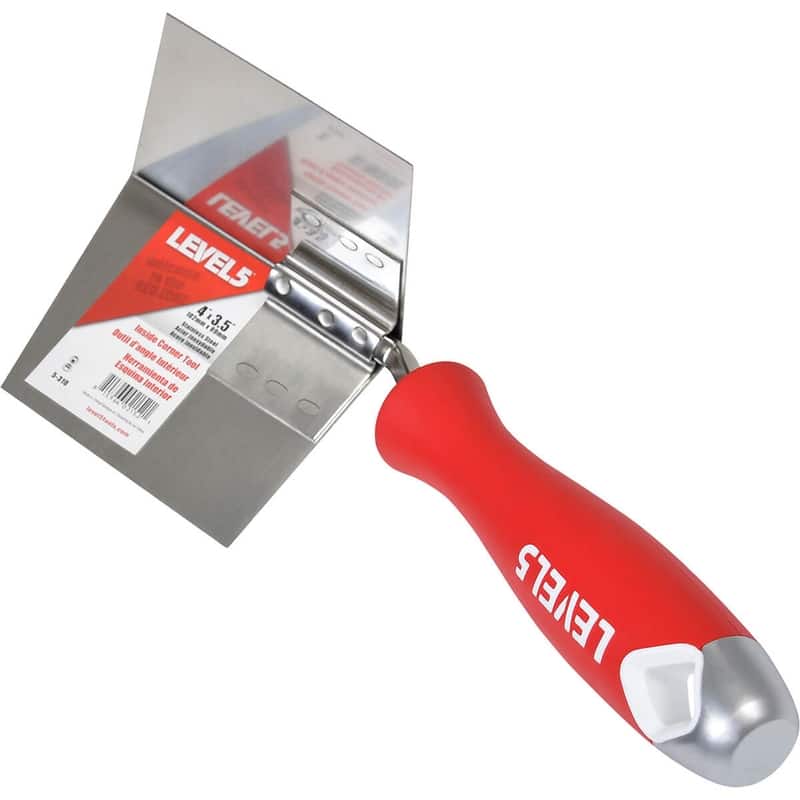 Use this LEVEL5 4" x 3.5" Inside Drywall Corner Trowel for professionally finishing inside corners. Its flexible stainless-steel blade provides a smooth 90° finish. It also features an alloy-metal hammer end for improved blade protection and a lightweight soft-grip handle for slip-resistance and all-day comfort.