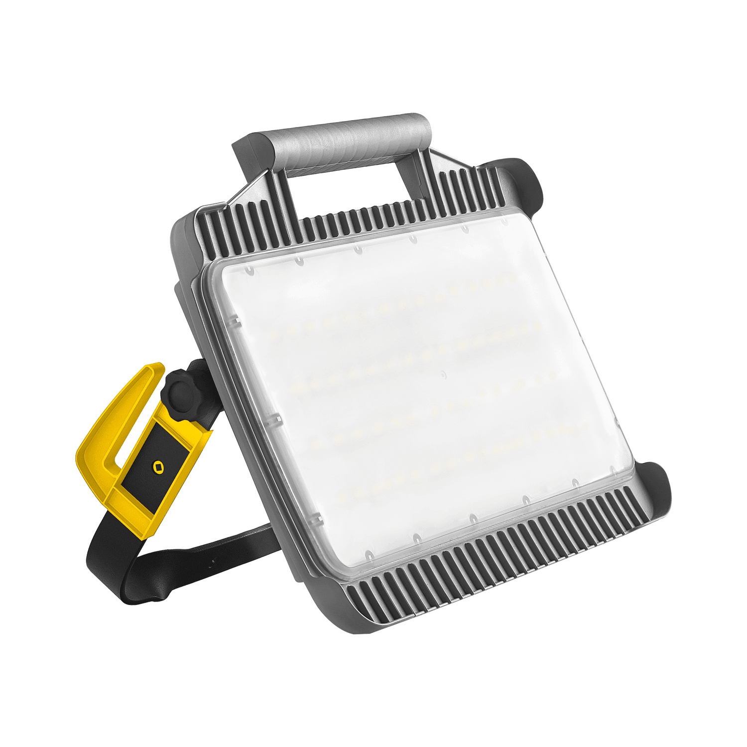 Compact and light LED floodlight for professional use. It provides uniform and stable directional lighting. Luminaire made of impact-resistant polipropylen (PP). Anti-glare diffuser made of polycarbonat (PC) which, despite the matt surface, transmits up to 80% of the light emitted by the diodes. It is equipped with a multi-position arm with a tilt lock of the housing, handles for cable winding and an ergonomic carrying handle.
