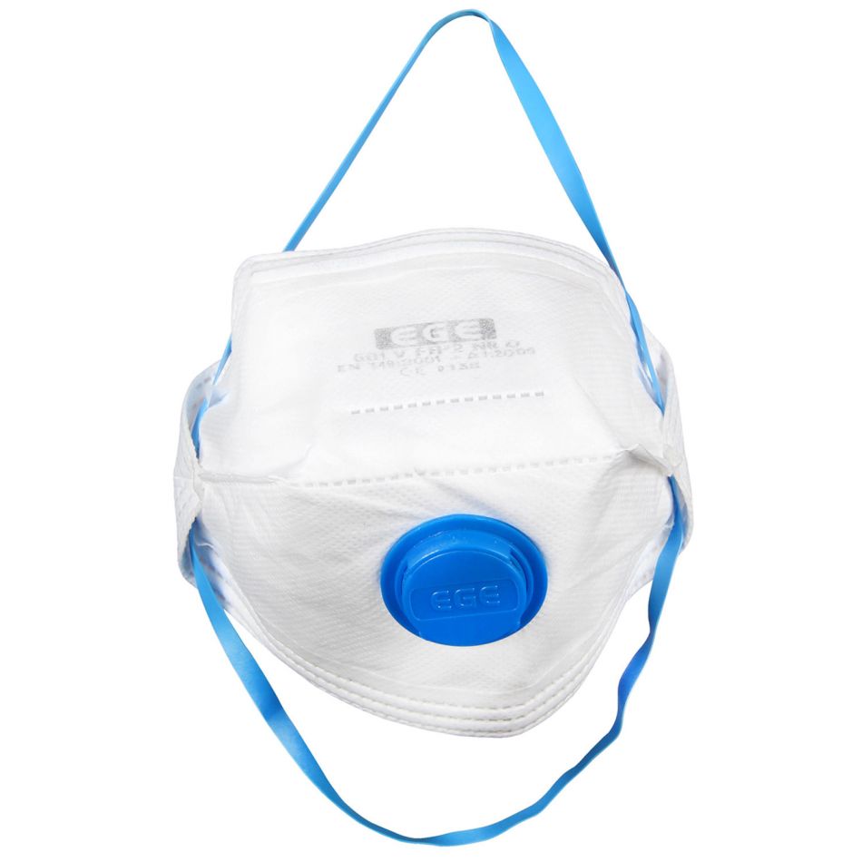 - Horizontally foldable respirator with valve for respiratory protection against aerosol particles, dust, smoke, fog.