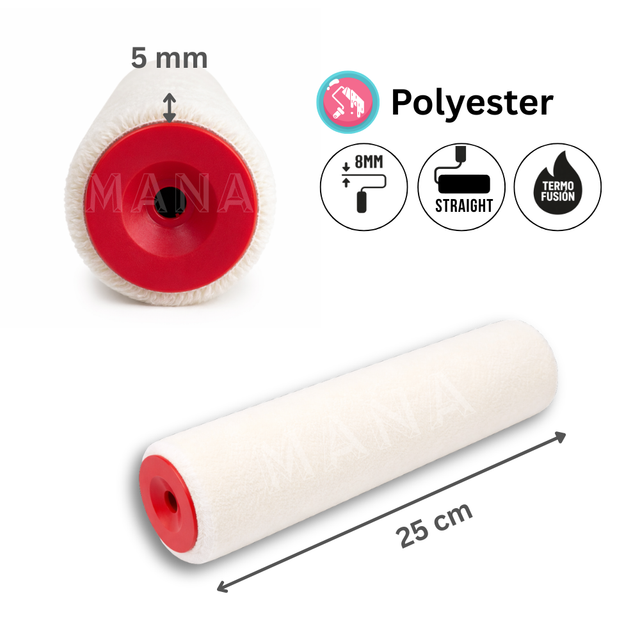 Благодарение на състава си и гъстотата на тъканата вълна, този валяк е незаменим при работа с лакове и епоксидни смоли. Дължина на влакното от 5 mm гарантира, че няма да се получи ефектът „портокалова кора“, а повърхността ще остане идеално гладка.
