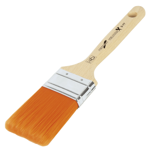 The Velourex tri-material flatbrush provides a perfect finish with water-based enamels. The handle is made of tri-material with comfortable and pleasant touch. It has a hanger, opener for plastic cans and built-in footrest. In addition, the latest generation of extra-fine synthetic fibers are easy to wash and easily return to their initial state after each application. The flat brush is reinforced with a stainless ferrule and nails and has Spanish, European and American numbering.