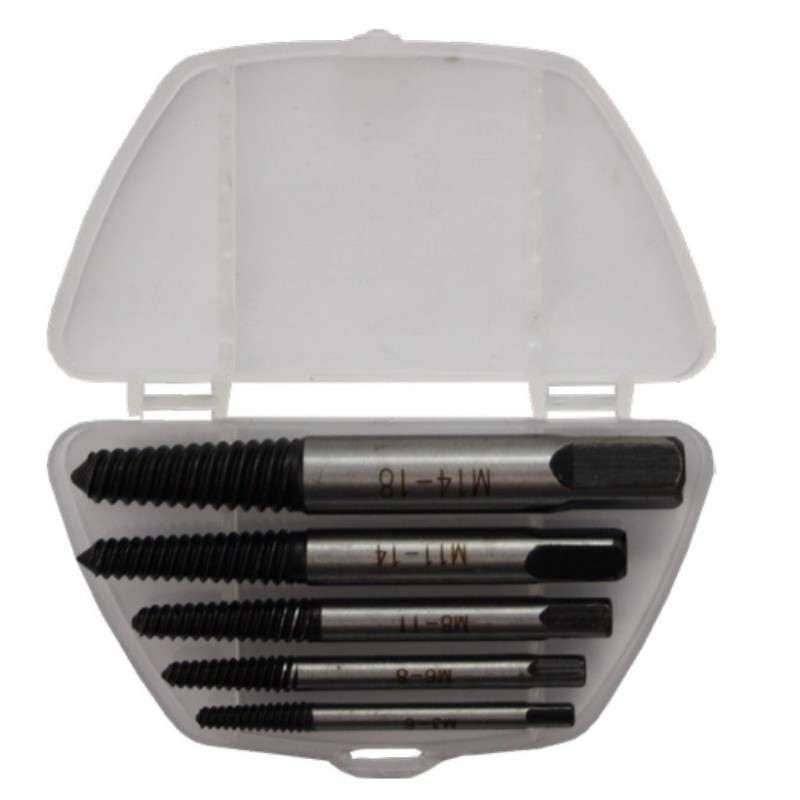 A set for extracting broken screws that cannot be removed by using a wrench. Hard steel.