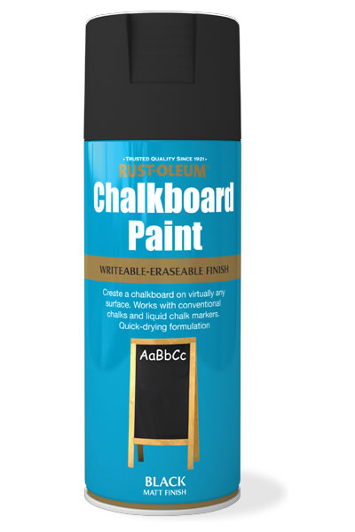 Rust-Oleum Chalkboard Paint is a tough, scratch resistant finish that allows you to create a writeable / wipeable chalkboard surface on a wide range of substrates including wood, metal and glass.