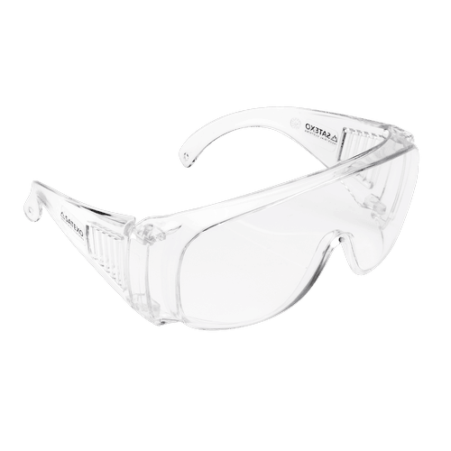 Safety glasses with polycarbonate lenses against scratches and sweating.