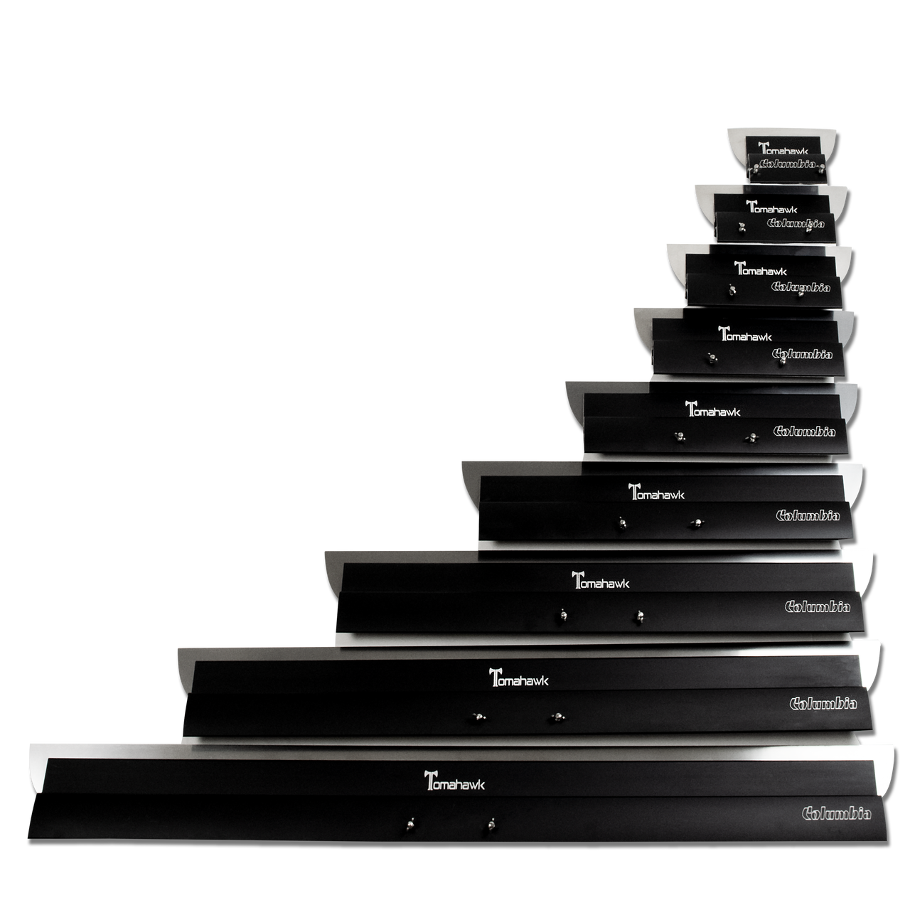 The Columbia Tomahawk set of Smoothing Blades is the most durable set on the market today. With no plastic pieces, the Tomahawk doesn't snap under pressure. And because the blades use a Flat Box handle, there are no plastic adaptors that will break with the weight of the larger blades. This also increases the stability and your ability to adjust the angle of attack while in motion. The Columbia Tomahawk will change what the industry expects from a professional grade Smoothing Blade.