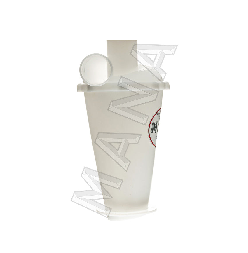 Due to gravity and the cone-shaped shape of the filter, the sucked particles lose their kinetic energy and collapse into the dust collecting vessel under the cyclone.