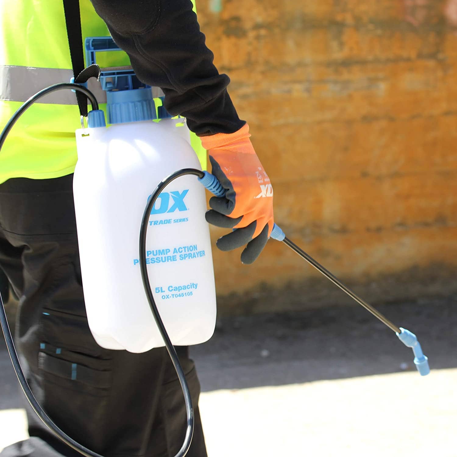 Ръчната пръскачка за OX Trade е изработена от изключително лек материал, но същевременно изключително здрав и е с голям обем от 5 литра, така че да не ви се налага да я пълните постоянно прекъсвайки вашата работа. Тя е с широк спектър на приложение – може да я използвате с разтвори за дезинфекция, за почистващи продукти, торове и т.н.