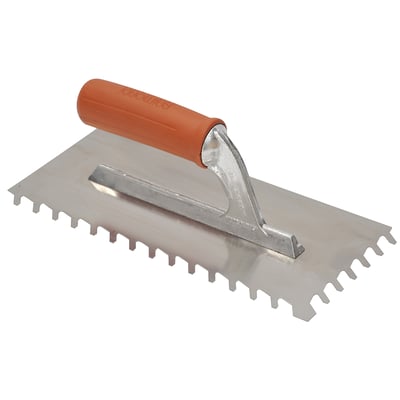 Специалният наклонен дизайн на назъбените ръбове осигурява равномерно нанасяне на лепило и перфектно покритие, което гарантира здраво залепване на плочките. Размерът от 10mm е идеален за средни и големи плочи, осигурявайки правилната дебелина на лепилния слой.